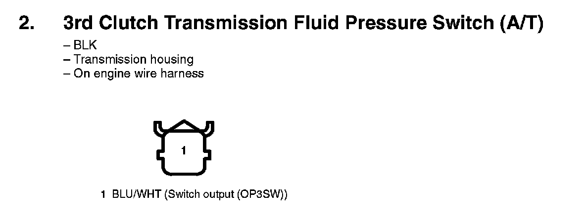 2. 3rd Clutch Transmission Fluid Pressure Switch (A/T):