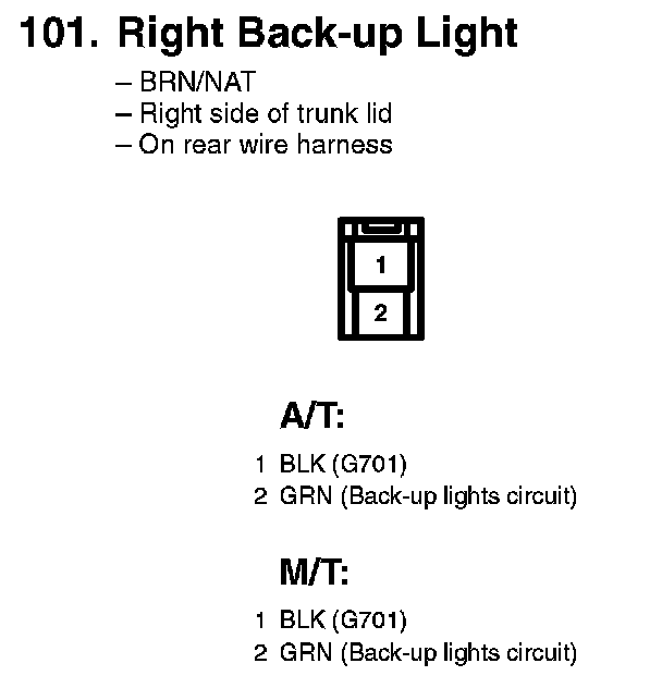 101. Right Back-up Light: