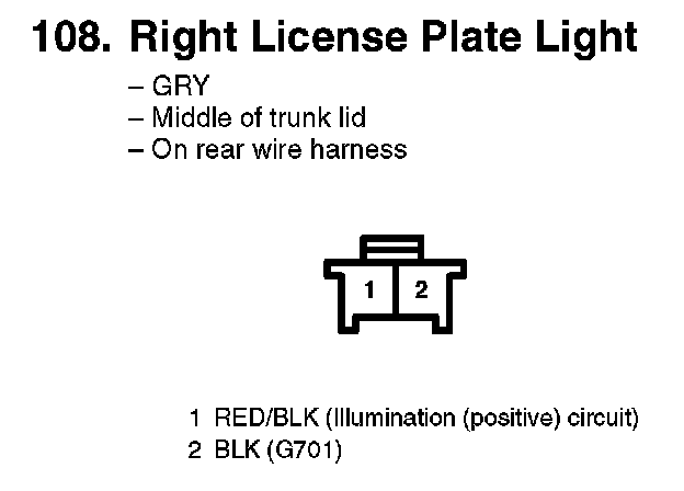 108. Right License Plate Light:
