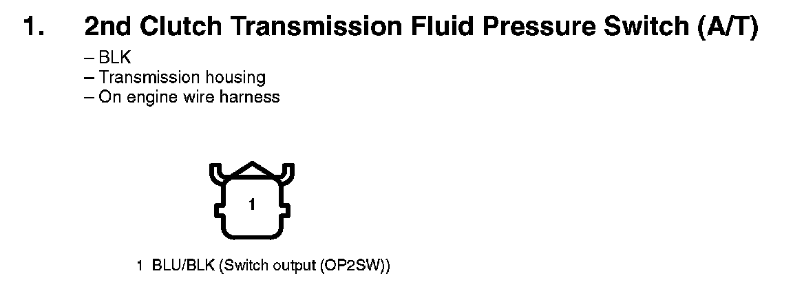 1. 2nd Clutch Transmission Fluid Pressure Switch (A/T):