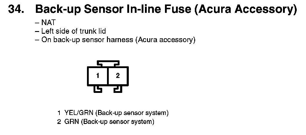 34. Back-Up Sensor In-Line Fuse (Acura Accessory):