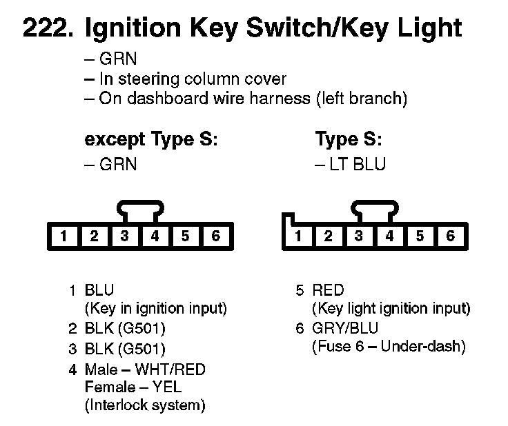 222. Ignition Key Switch/Key Light:
