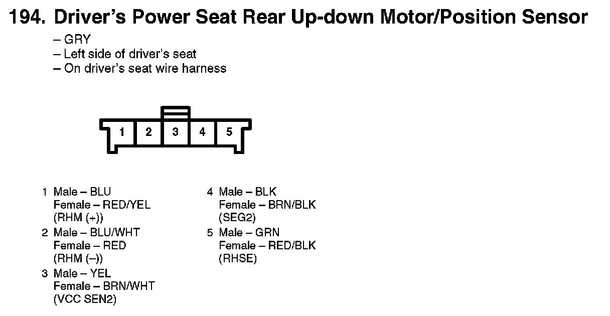 194. Driver's Power Seat Rear Up-down Motor/Position Sensor:
