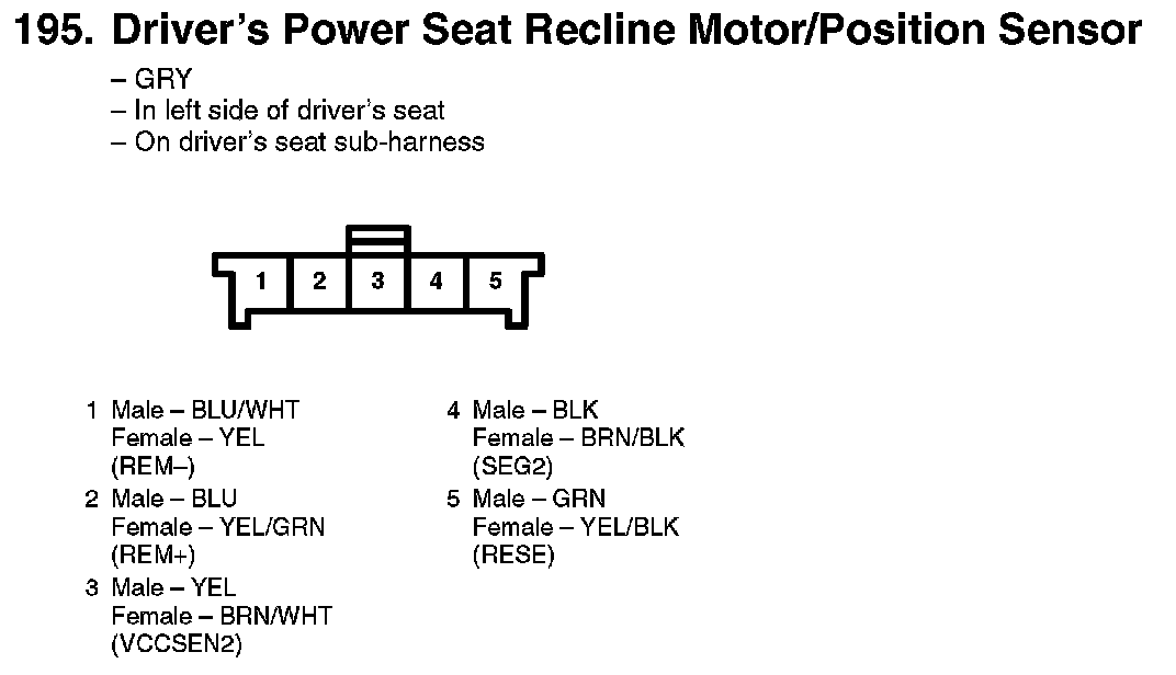 195. Driver's Power Seat Recline Motor/Position Sensor: