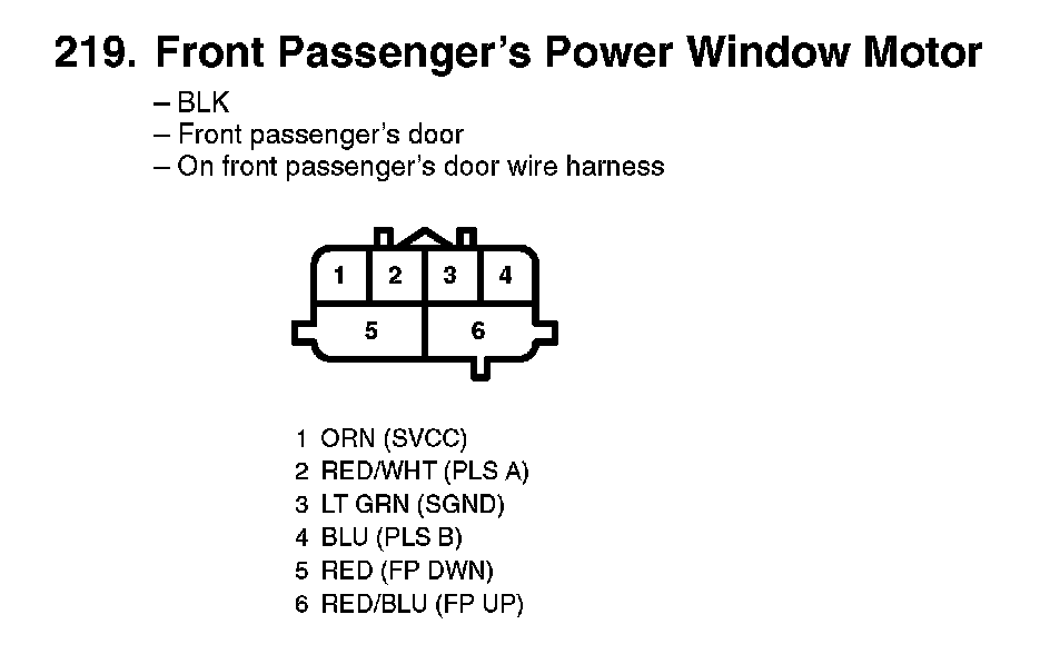 219. Front Passenger's Power Window Motor: