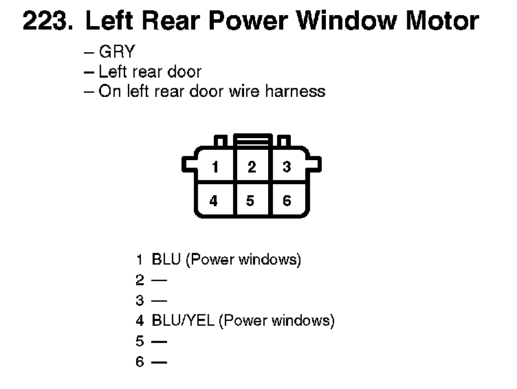 223. Left Rear Power Window Motor: