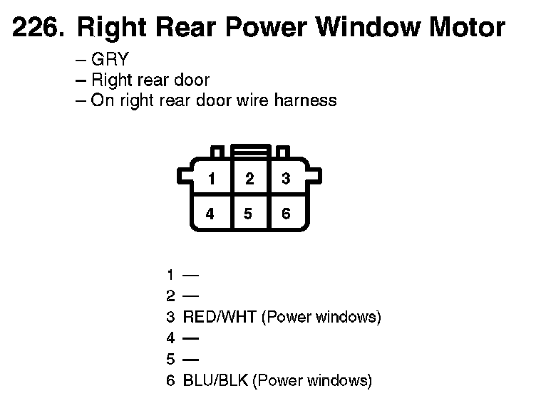 226. Right Rear Power Window Motor: