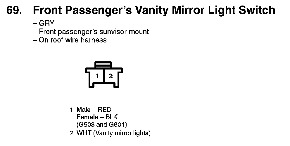 69. Front Passenger's Vanity Mirror Light Switch: