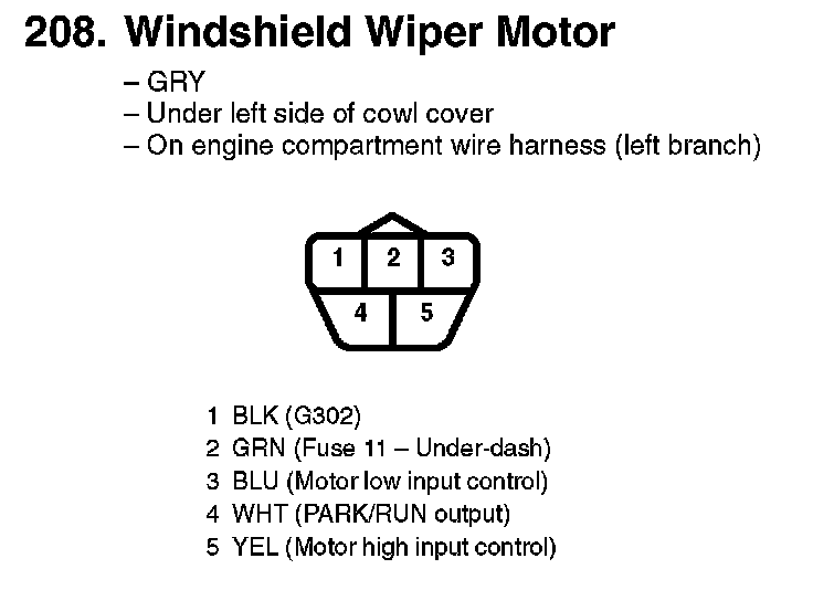 208. Windshield Wiper Motor: