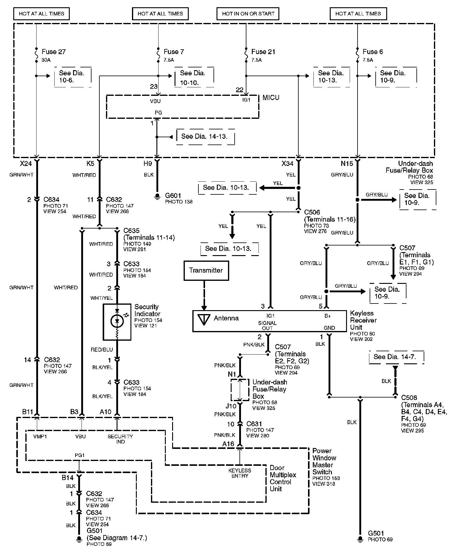 Connector Views: Connector terminal views (references to VIEWS) referred to within these diagrams can be found at Connector Views by View Number. Connector Views By View Number