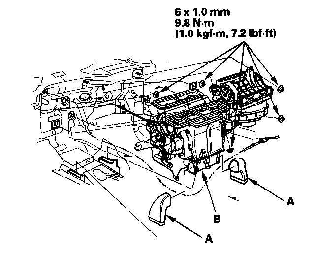 Heater Unit/Core ReplacementSRS components are located in this area. Review the SRS component locations, and the precautions and procedures before doing repairs or service.