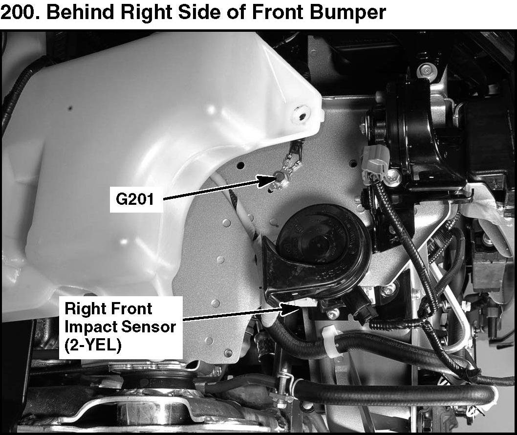 200. Behind Right Side Of Front Bumper: