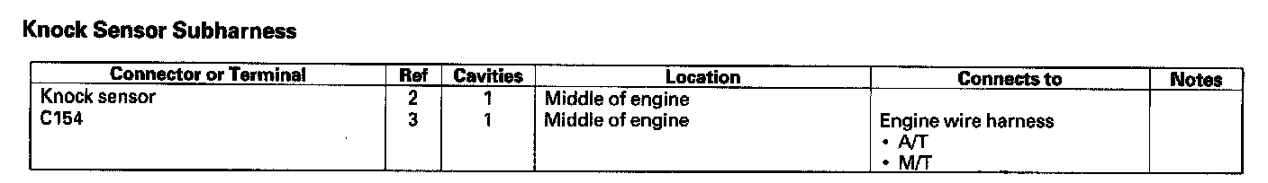 Knock Sensor Subharness: