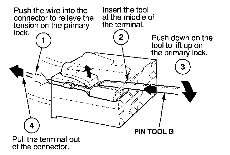 Before you begin, inspect the wire you are about to repair for damage and length. Make sure the wire will be long enough to make a terminal repair without stretching it when you reinstall the terminal in the connector. If the wire is too short, or if access to the connector is too restricted to make a terminal repair, you may need to install a pigtail terminal (a short length of wire with a factory-crimped terminal on it). Refer to HOW TO INSTALL PIGTAIL TERMINALS.
