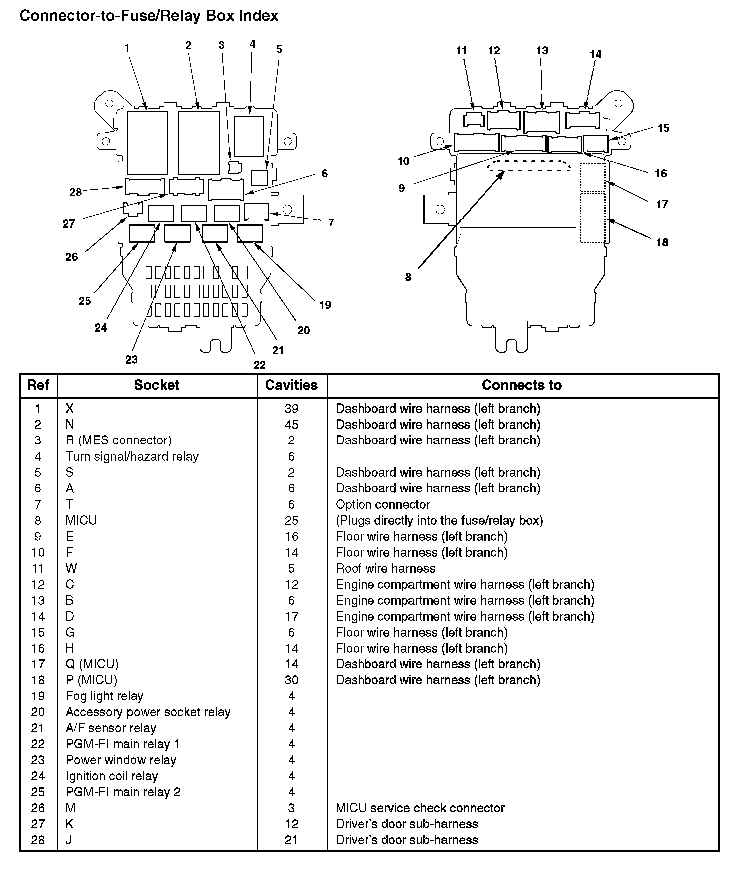 Power Distribution Fuse To Components Index:
