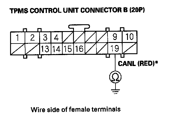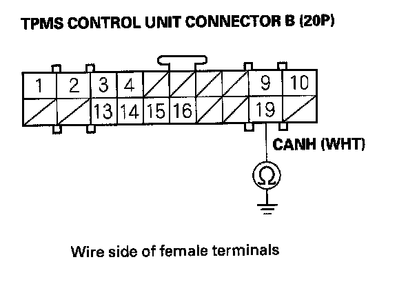 17. Check for continuity between TPMS control unit connector terminal B19 and body ground.