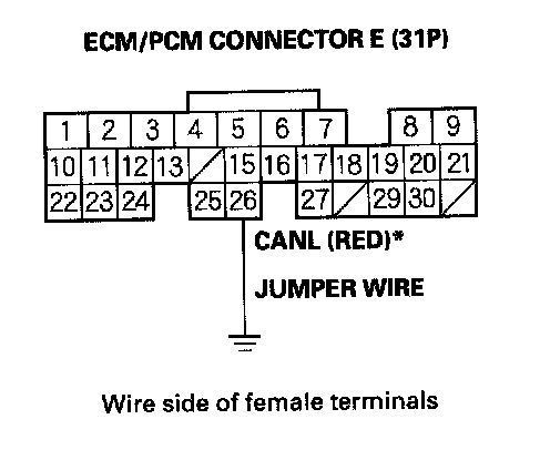 19. Remove the jumper wire from ECM/PCM connector E(31P).