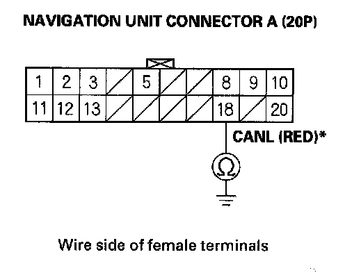 24. Repair open in the wire between navigation unit connector terminal A18 and body ground.
