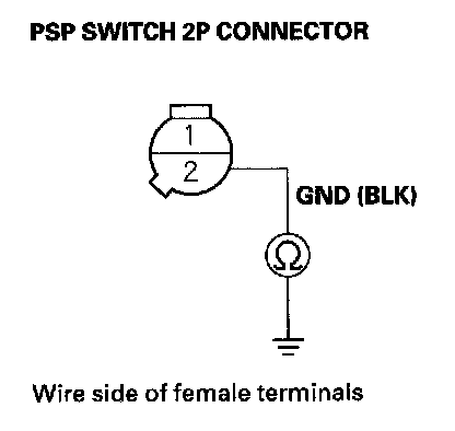 13. Check for continuity between PSP switch 2P connector terminal No. 1 and body ground.