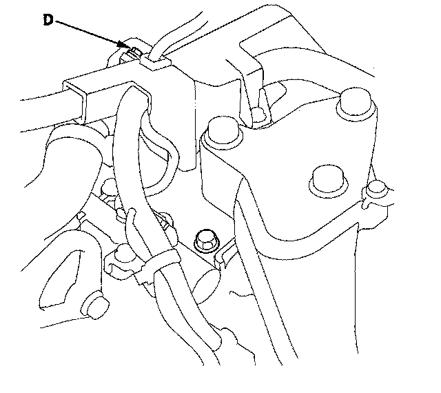 12. Remove the intake air duct and air cleaner assembly, and connect the oil pressure gauge to the 2nd clutch pressure inspection port (D). Then temporarily install the air cleaner assembly and intake air duct.