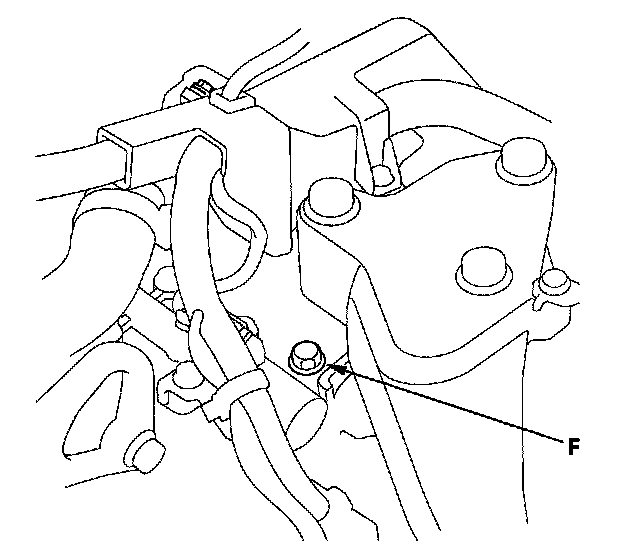 25. Shift to 4th gear, and measure the 4th clutch pressure at the 4th clutch pressure inspection port (F) while holding the engine speed at 2,000 rpm.