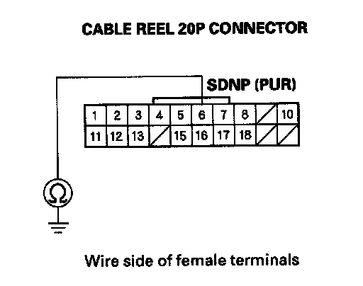 7. Check for continuity between cable reel 20P connector terminal No. 6 and body ground.
