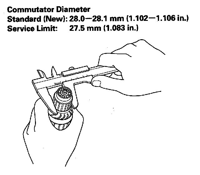 8. Check the commutator diameter. If the diameter is below the service limit, replace the armature.