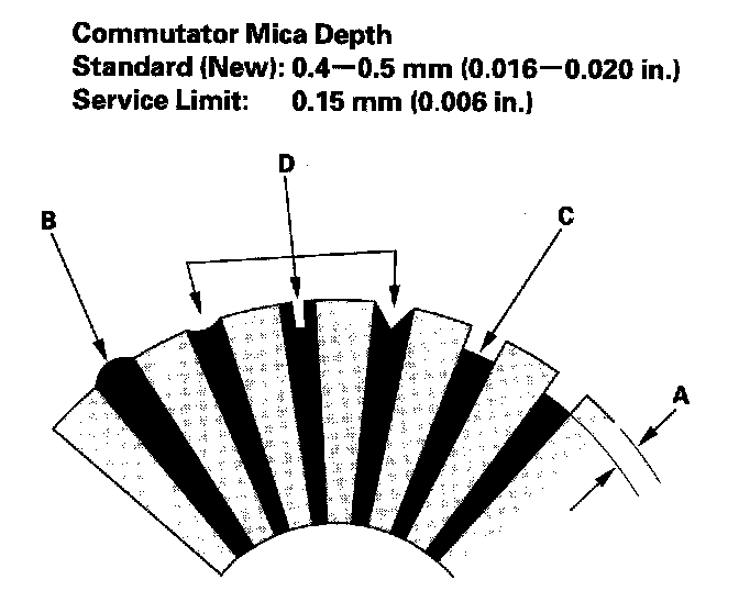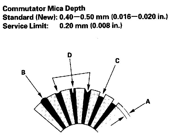 - If the commutator runout is within the service limit, check the commutator for carbon dust or brass chips between the segments.