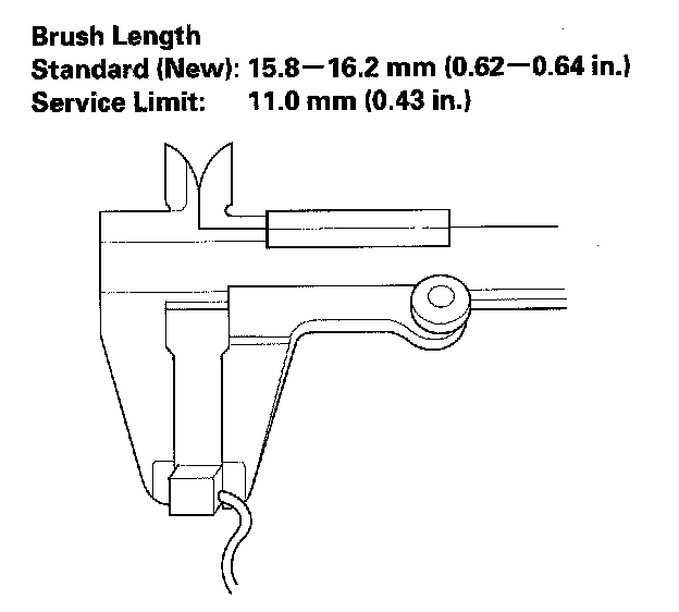 11. Measure the brush length. If it is not within the service limit, replace the brush holder assembly.