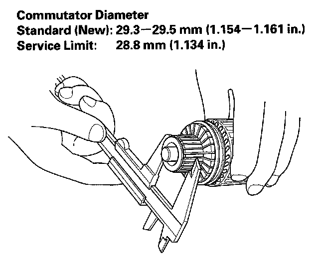 5. Check the commutator diameter. If the diameter is below the service limit, replace the armature.