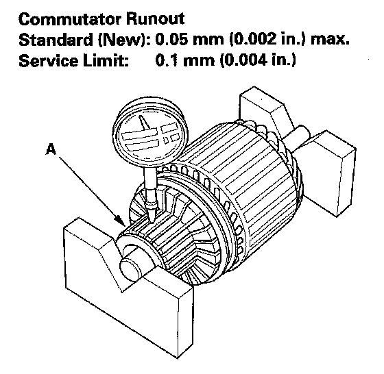 - If the commutator runout is not within the service limit, replace the armature.