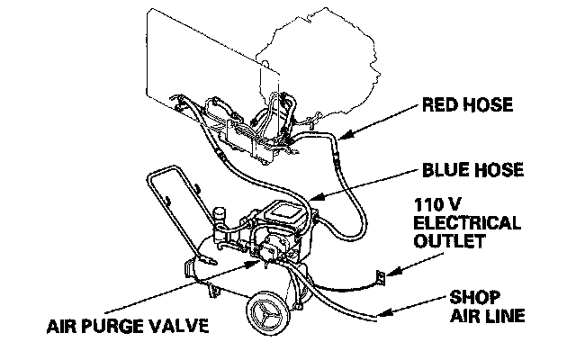 7. Connect a shop air hose (regulated to 100 to 125 psi) to the air purge valve.