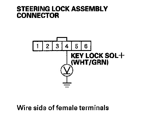 5. Check for voltage between steering lock assembly connector terminal No. 4 and body ground.
