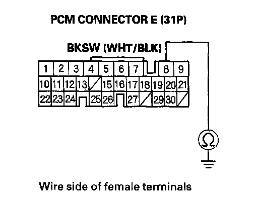 19. Check for continuity between PCM connector terminal E8 and body ground.