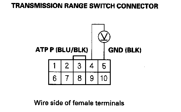 23. Measure the voltage between transmission range switch connector terminals No. 4 and No. 5.