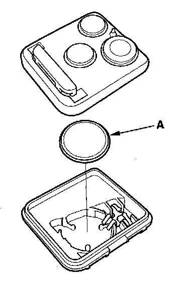 3. Replace the transmitter battery (A) with a new one, and try to lock and unlock the doors with the transmitter by pressing the lock or unlock button five or six times.