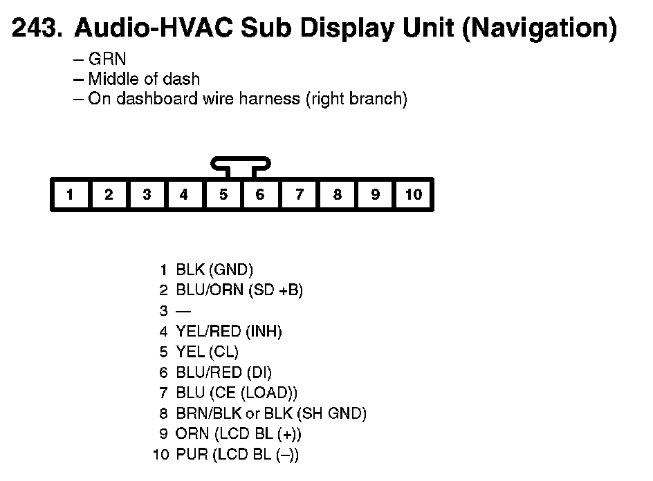 243. Audio-HVAC Sub Display Unit (Navigation):