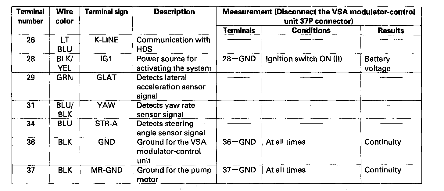 VSA Modulator-Control Unit Inputs and Outputs for 37P Connector (Part 1):