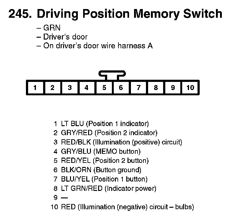245. Driving Position Memory Switch: