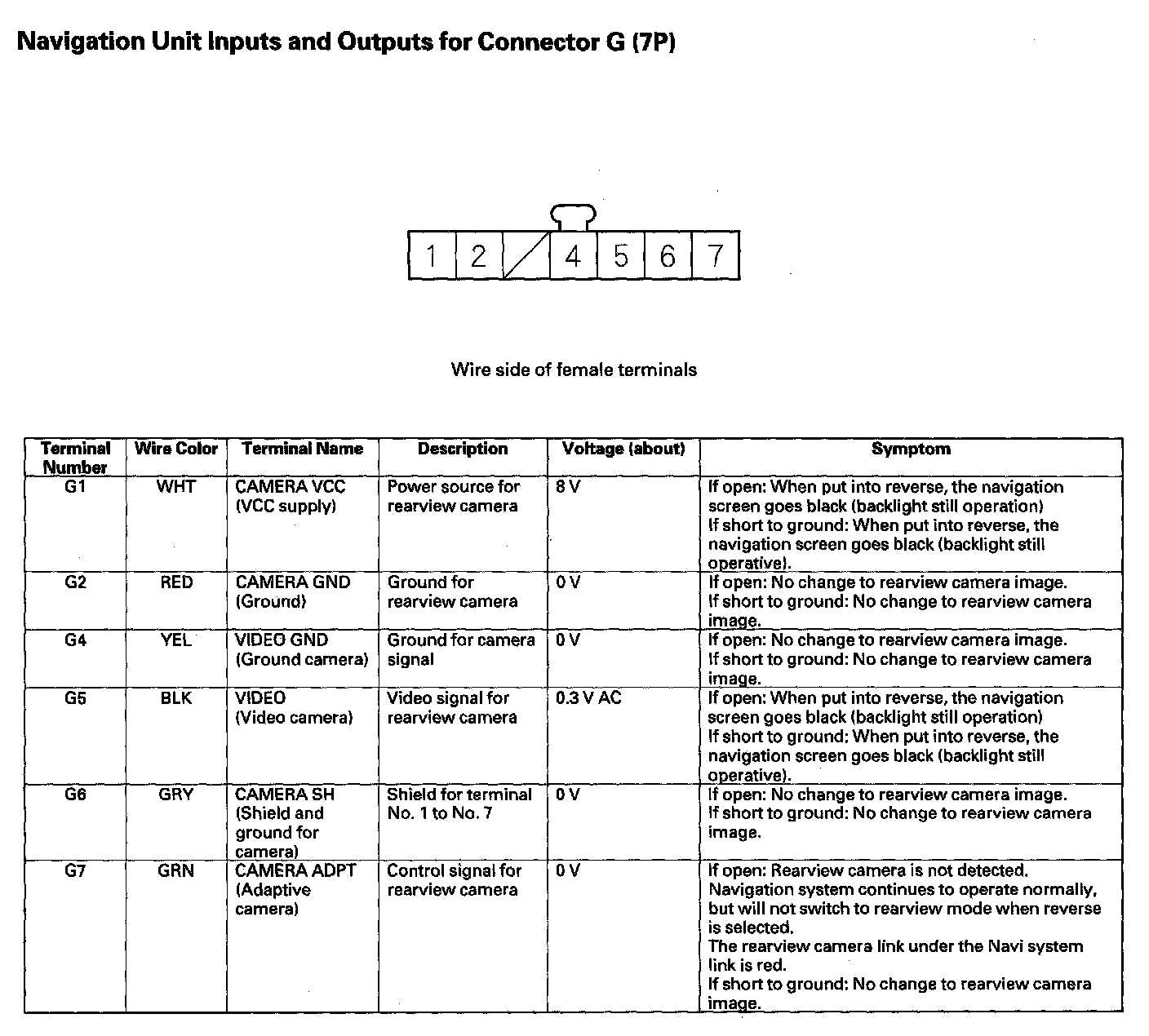 Navigation Unit Inputs And Outputs For Connector G (7P):