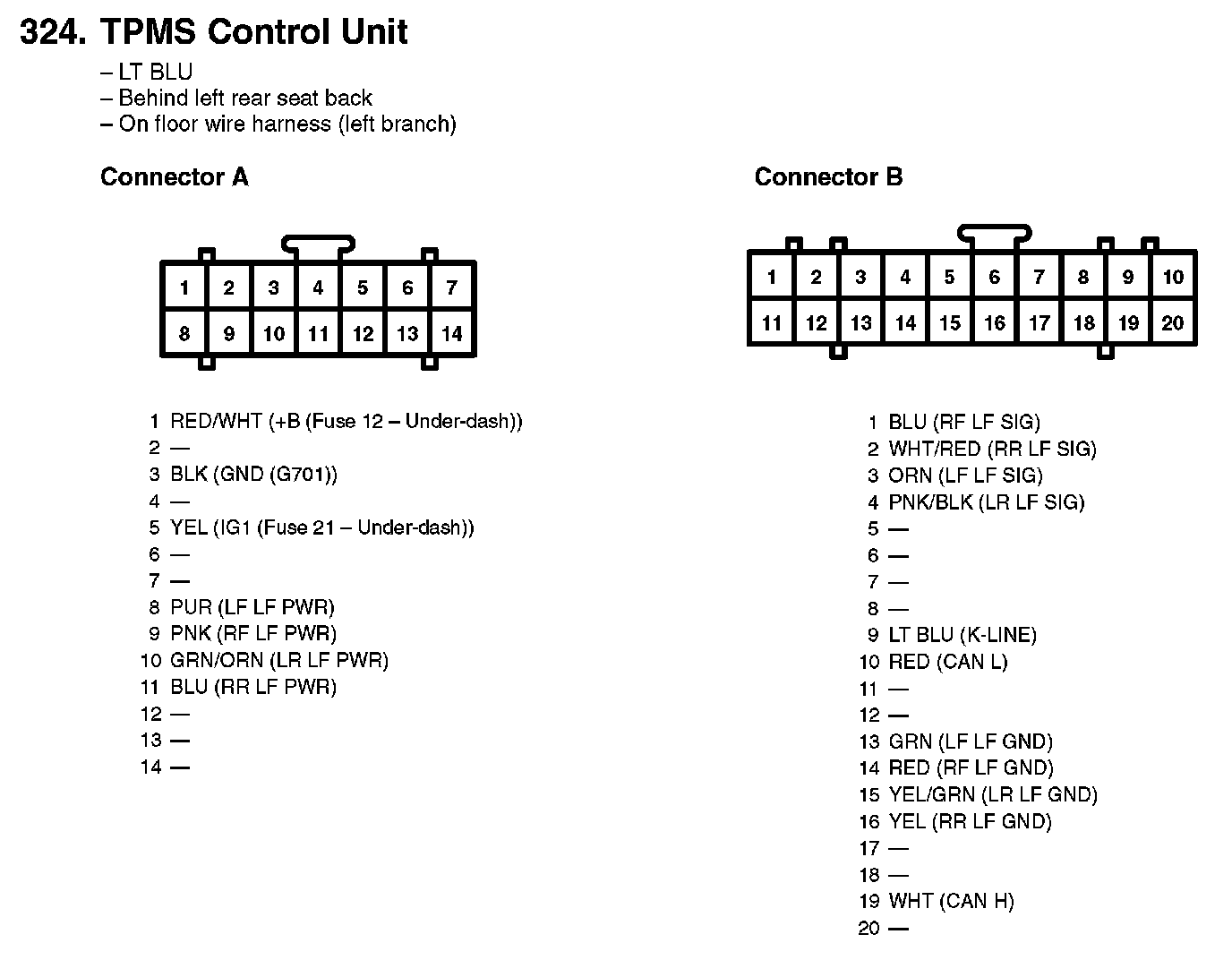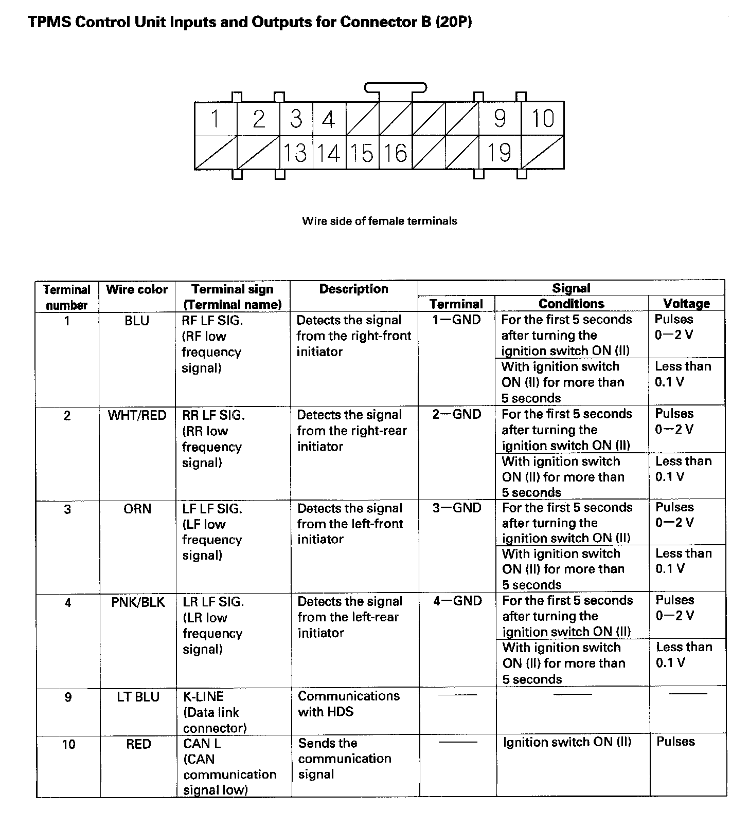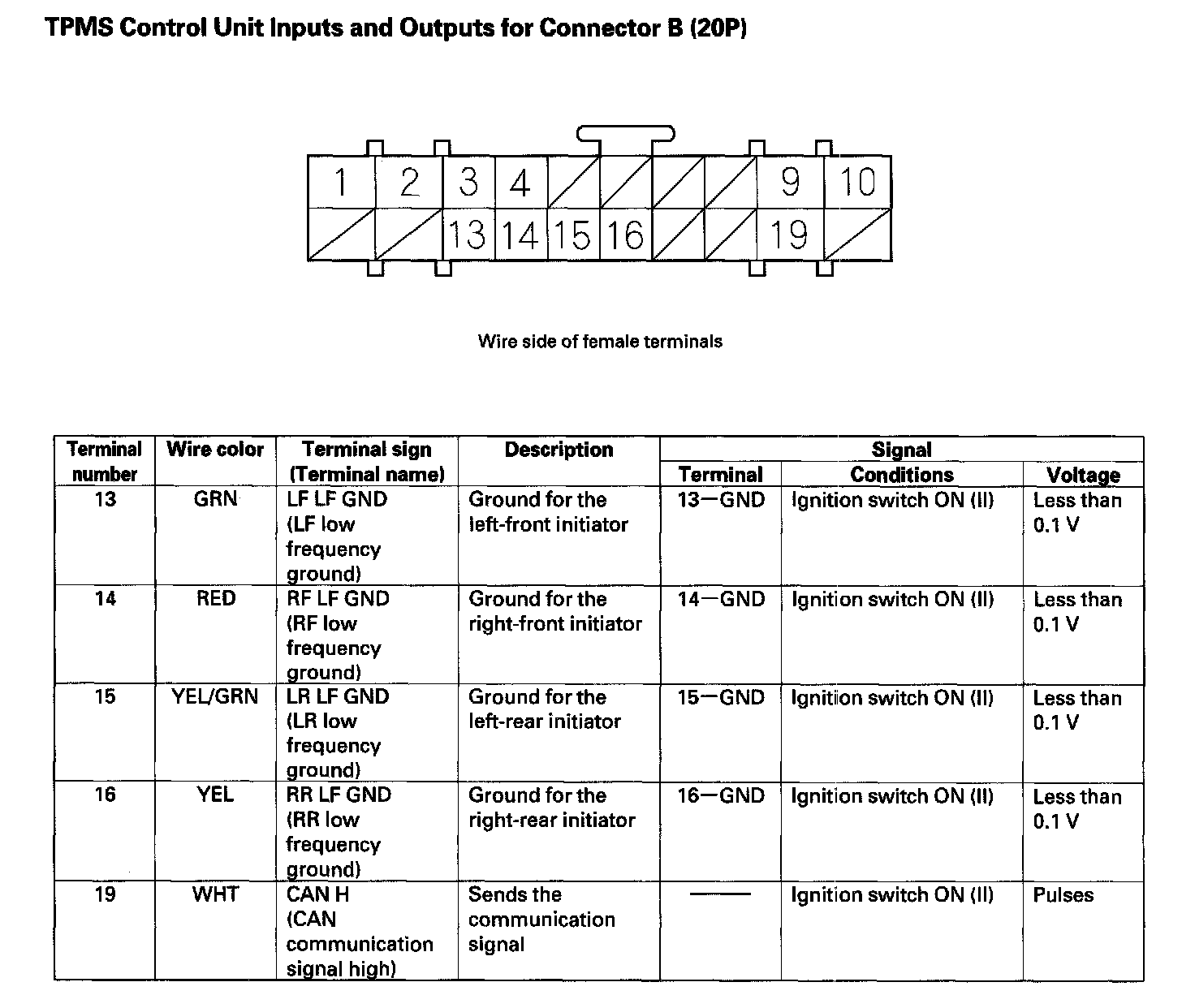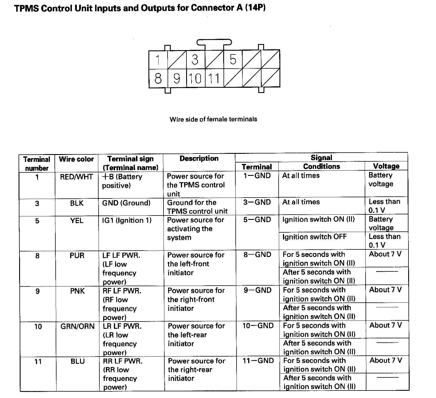 TPMS Control Unit Inputs and Outputs (Part 1):
