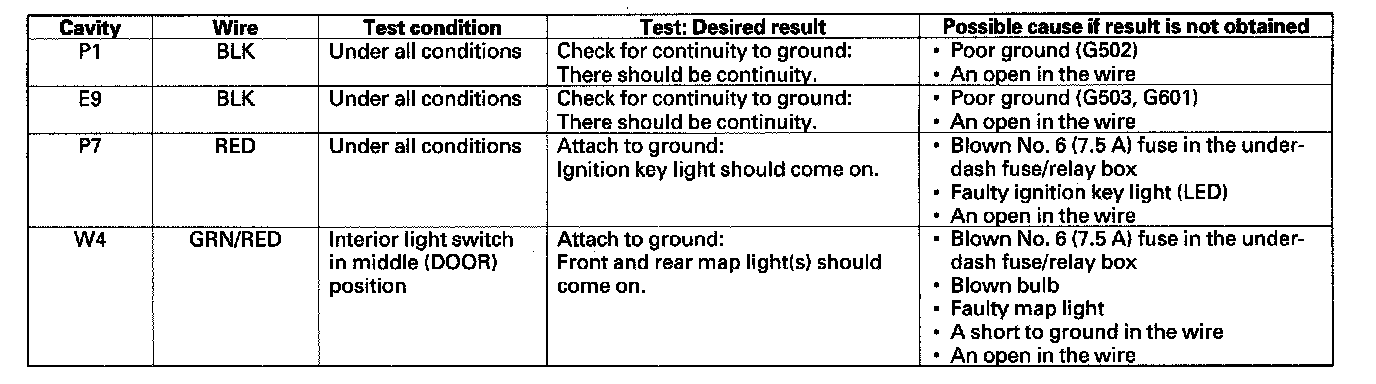 Control Unit Input TestNOTE: Make sure the ignition switch is OFF before disconnecting the under-dash fuse/relay box connectors.