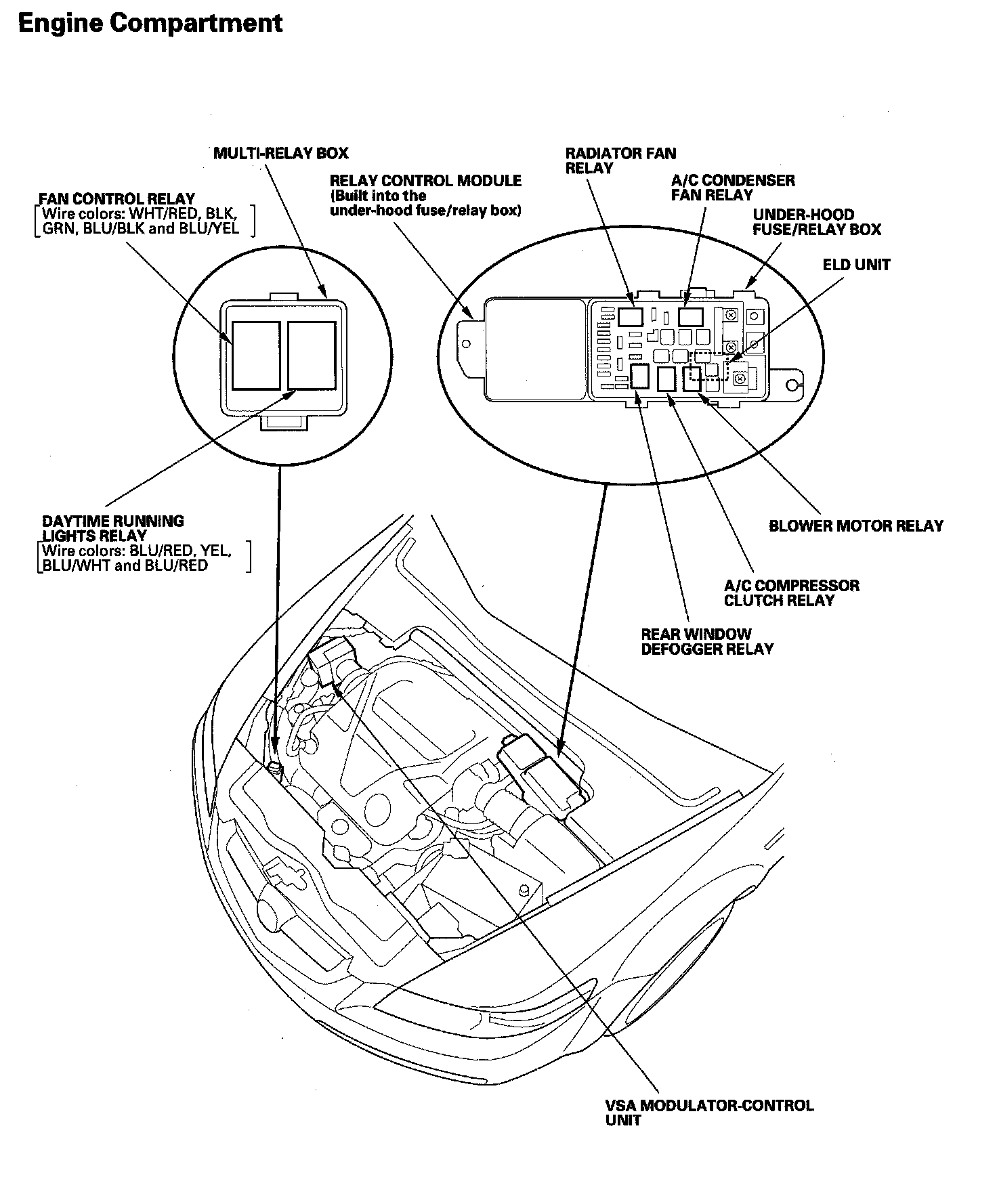 Relay and Control Unit Locations Engine Compartment: