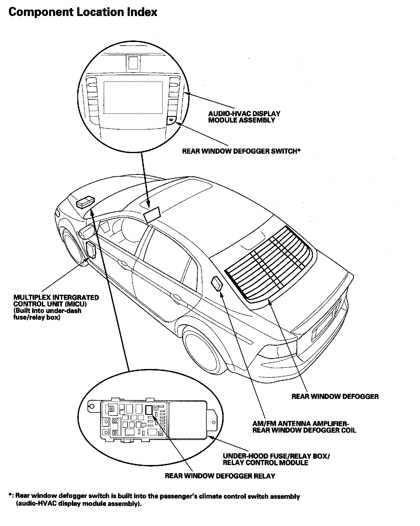 Rear Window Defogger Component Location Index: