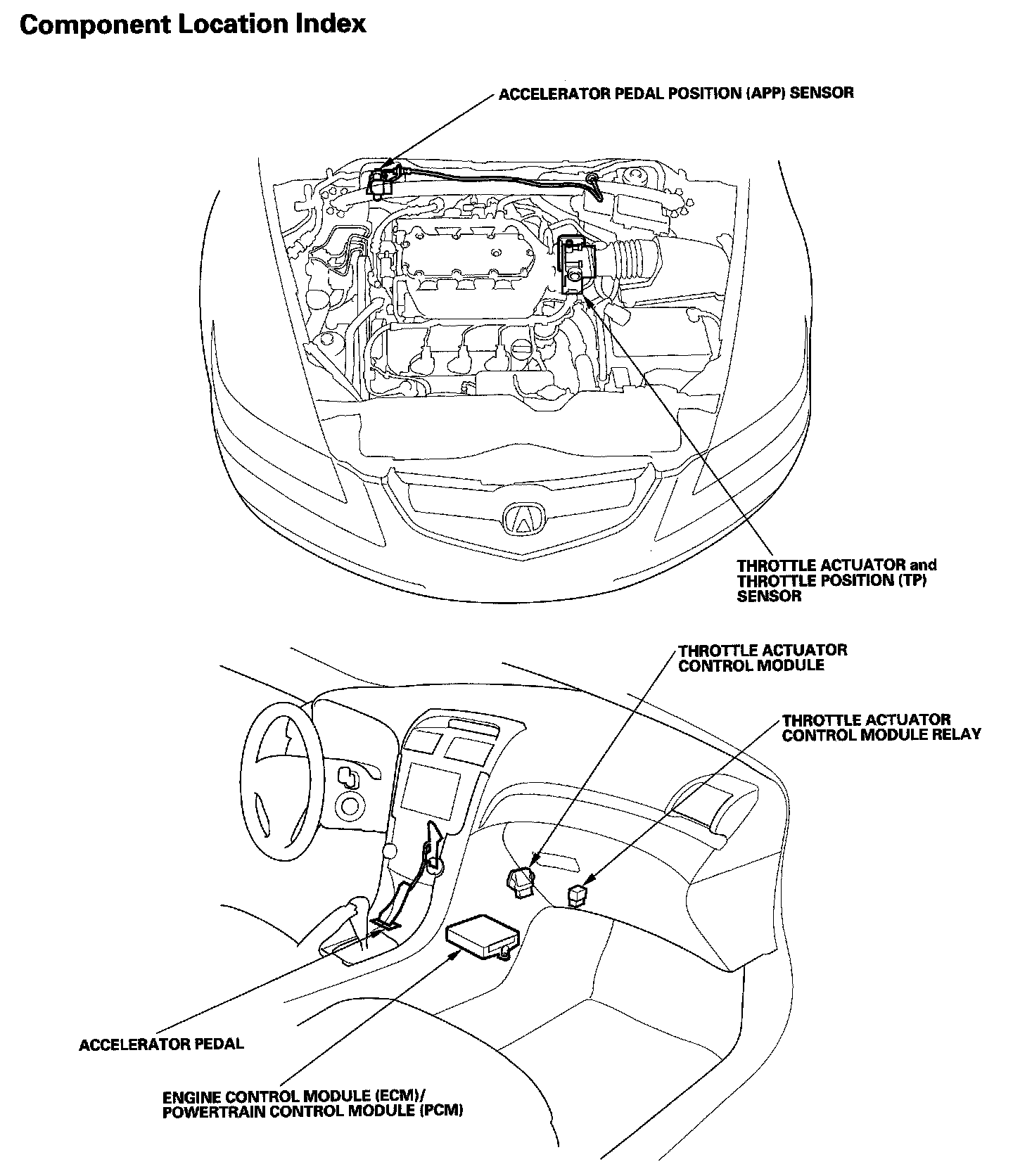 Electronic Throttle Control System Component Location Index: