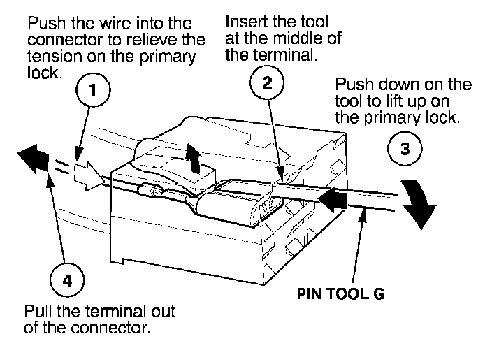 - If it has a secondary terminal lock, go to Connectors With a Secondary Lock. A secondary lock, found on most connectors on some models, is an additional locking device on the connector housing as a backup for the primary lock on the terminal.