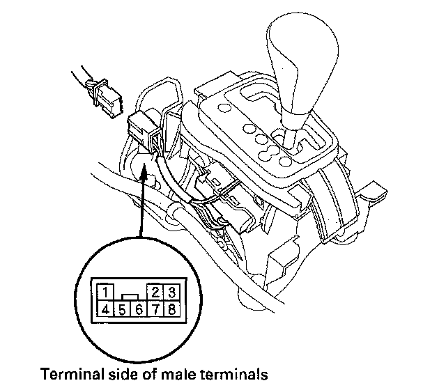 There should be continuity when the shift lever is pulled toward the downshift position (-), and no continuity with the shift lever released to the neutral position.