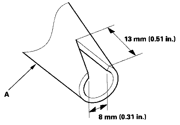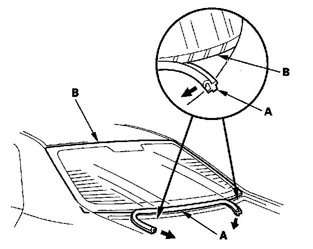 6. Remove the molding (A) from the lower edge of the rear window (B). If necessary, cut the molding with a utility knife.