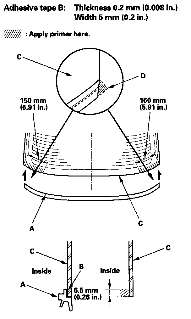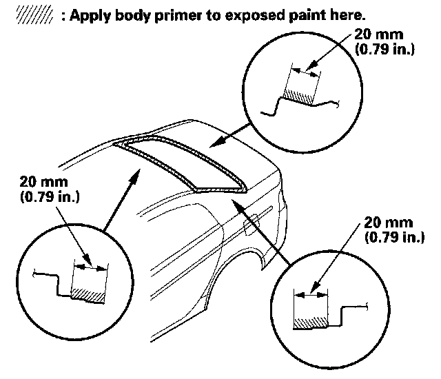 - Never touch the primed surfaces with your hands. If you do, the adhesive may not bond to the rear window properly, causing a leak after the rear window is installed.