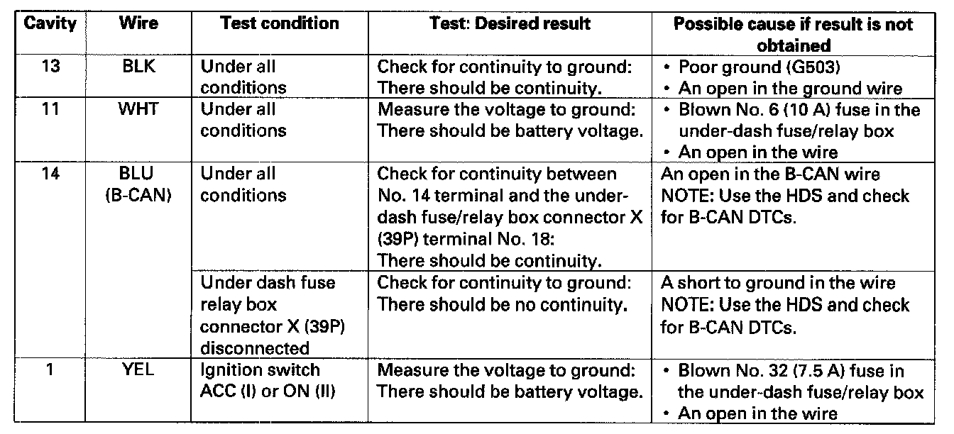 Control Unit Input TestNOTE: Before testing, troubleshoot the multiplex integrated control system using B-CAN System Diagnosis Test Mode A.
